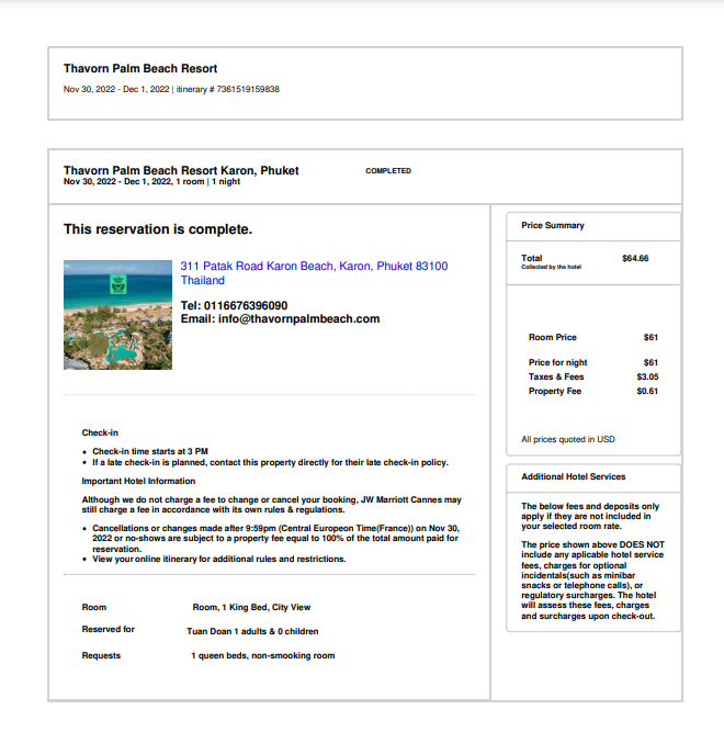 Fake Hotel tickets